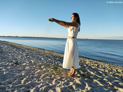 Através do trabalho de etno-fotoperformance nomeado como “Toda la piel de América en mi piel” apresento a minha leitura do ambiente do Encuentro América Unida. Nas quatro séries – Bailemos, Wiphala, Pachamama e Pertenezco – me desloco entre o encantamento com as coreografias que vi, vejo e participo em cena; pela minha relação com a diversidade cultural latino-americana; pelo contato com as energias da natureza presentes nas celebrações à Pachamama e pela ideia de pertencimento a esse lugar que acolhe a todos sem delimitar fronteiras artísticas ou culturais (ROCHA, 2021, p.151-152).